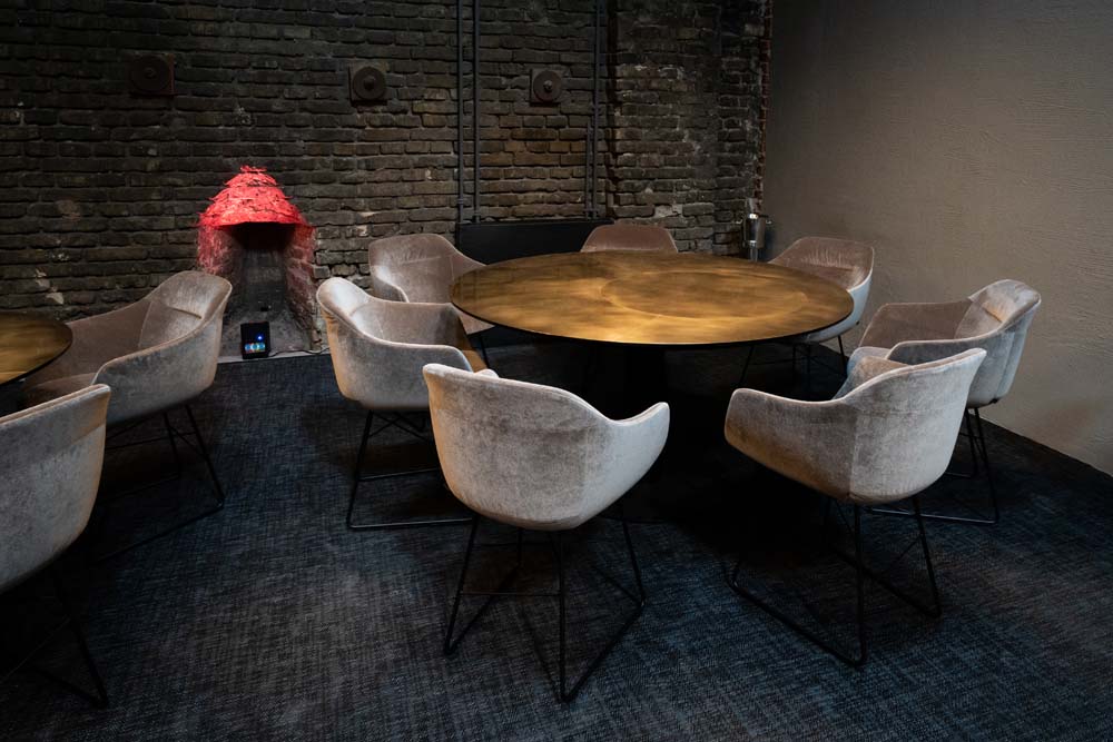 Edles Messing, geschliffen und patiniert, unterstreicht die Exklusivität des Senns Restaurants. Individuelle Metallarbeiten verleihen dem Interieur Wärme und Charakter – eine perfekte Kulisse für außergewöhnliche kulinarische Erlebnisse.
